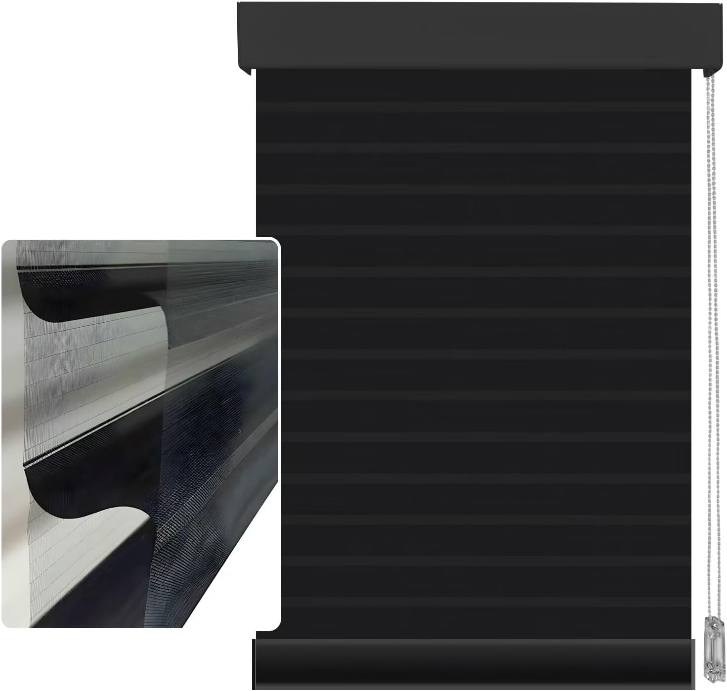 - Premium Dual-Layer Fabric:Crafted from 100% imported polyester, our blinds offer superior light filtering, UV protection, and ventilation. The dual-layer design alternates between sheer and solid panels, letting you effortlessly adjust sunlight while maintaining privacy day or night. Anti-static and dust-resistant for lasting durability.
