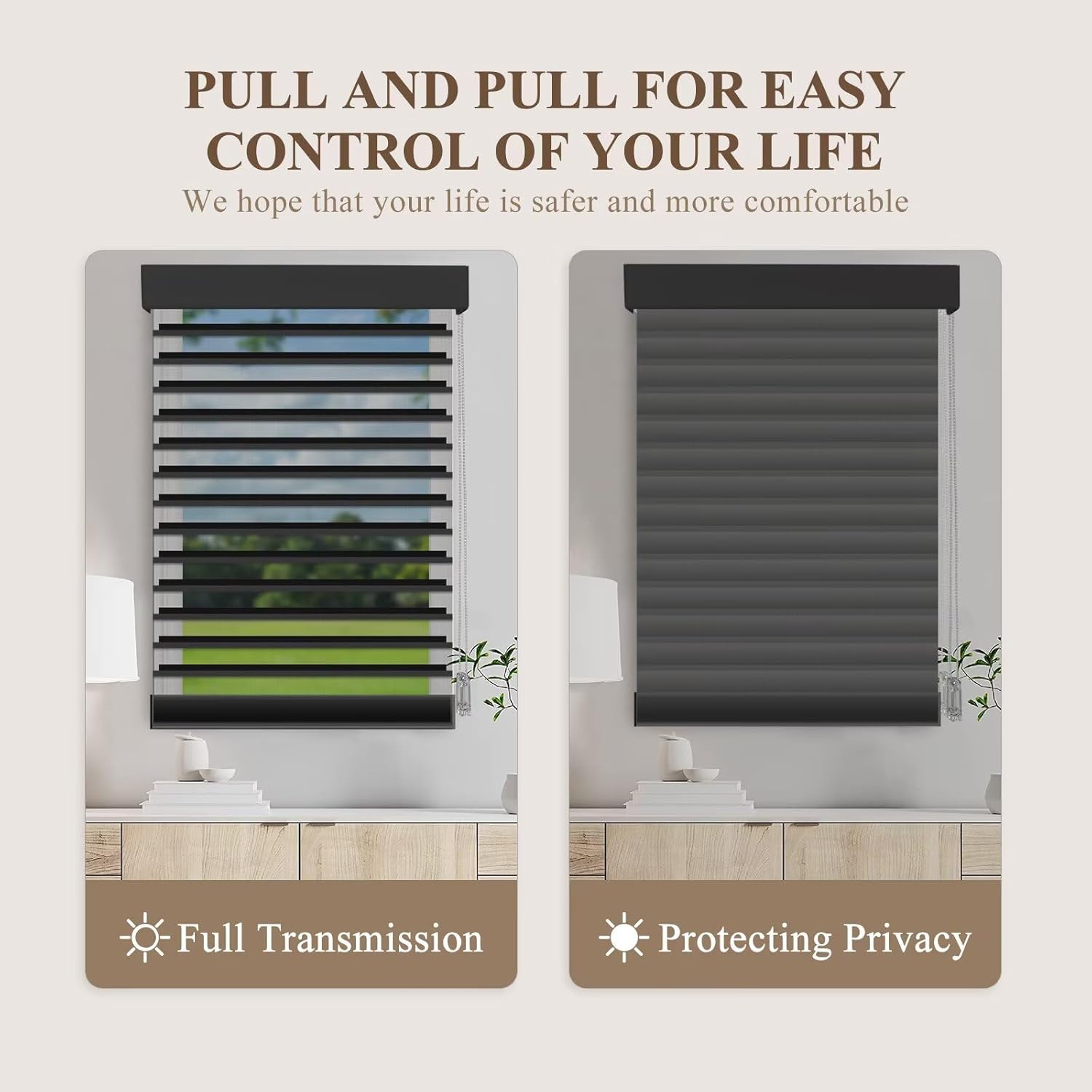 Etokfoks 59in H Black Light Filtering Dual Layer Blinds Shades for Windows