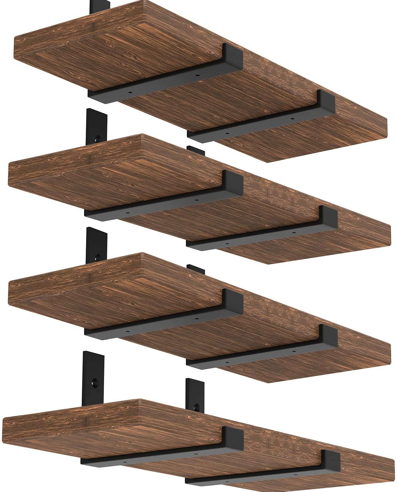 | Accurate 90° industrial design J wall shelves brackets, stamped and bent in one piece, no welds, not easy to break with better toughness, the standardized 90-degree design is so important that it’ s the objective factor in ensuring items remain level and not tip over after being placed on the board (board is not included) The shelf brackets are made of 1/5 inch thickness solid cast iron, every 2 shelves brackets can load a weight of 160lbs-200lbs, with more shelving brackets, you can build a powerful wall shelf. Well-paint matte black with high quality rustproof coating, not easy to rust and fade (board is not included) Package includes solid long screws, short screws, dry wall anchors, concrete wall anchors, they can be used on wooden wall, drywall and hard concrete wall, achieve strong grip on wall surface, a spirit level is also included to measure as well as keep the shelf hardware balanced during installation. Detailed installation instructions are provided, can be installed even by someone without experience |